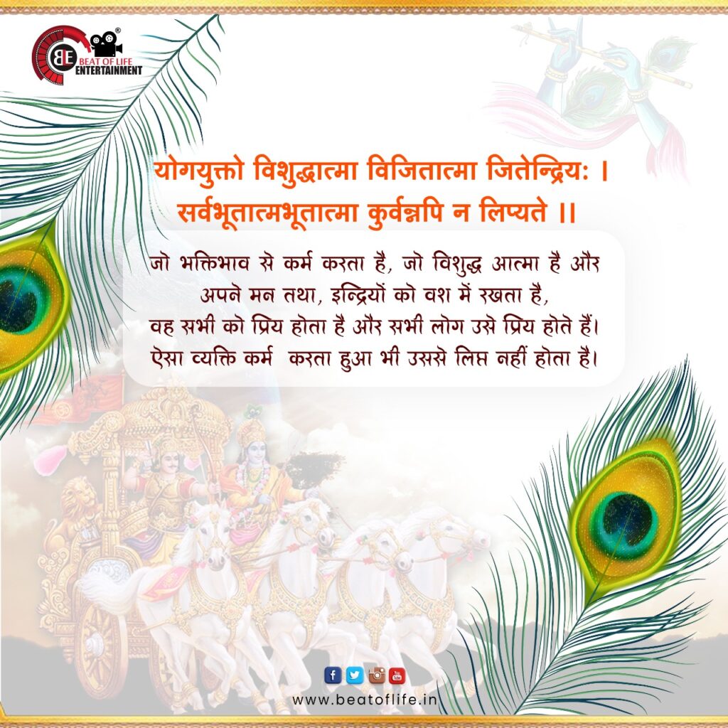 योगयुक्तो विशुद्धात्मा विजितात्मा जितेन्द्रियः । सर्वभूतात्मभूतात्मा कुर्वन्नपि न लिप्यते ।।