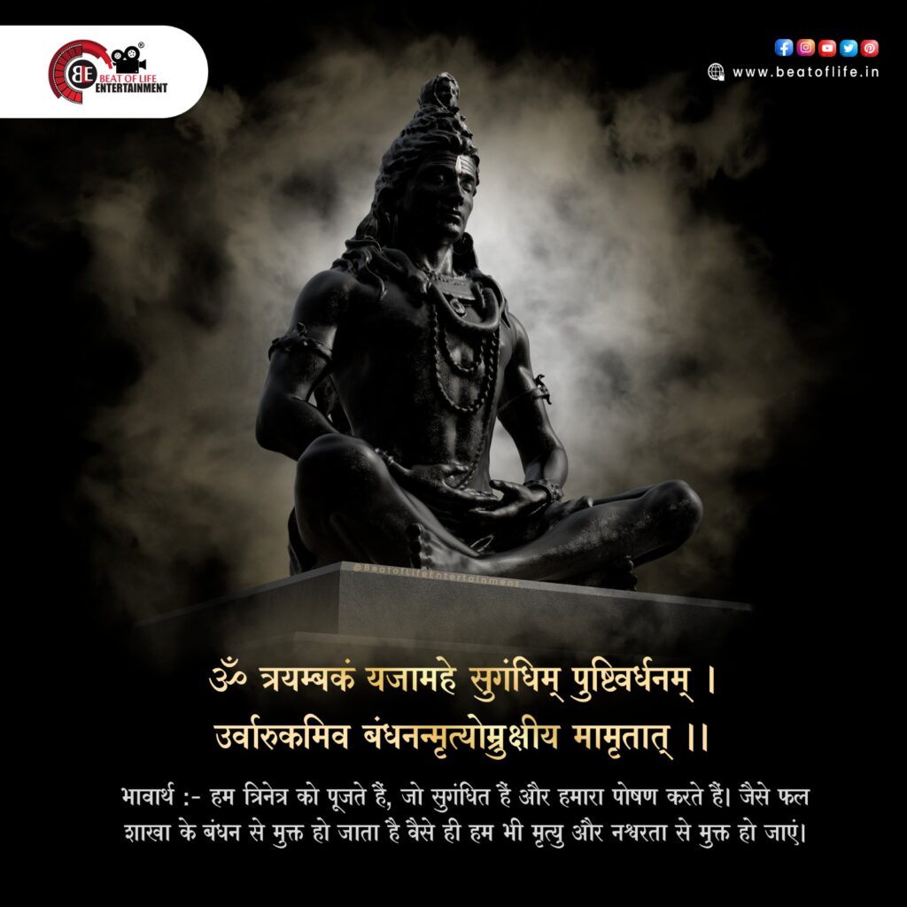 भावार्थ :- हम त्रिनेत्र को पूजते हैं, जो सुगंधित हैं और हमारा पोषण करते हैं। जैसे फल शाखा के बंधन से मुक्त हो जाता है वैसे ही हम भी मृत्यु और नश्वरता से मुक्त हो जाएं।