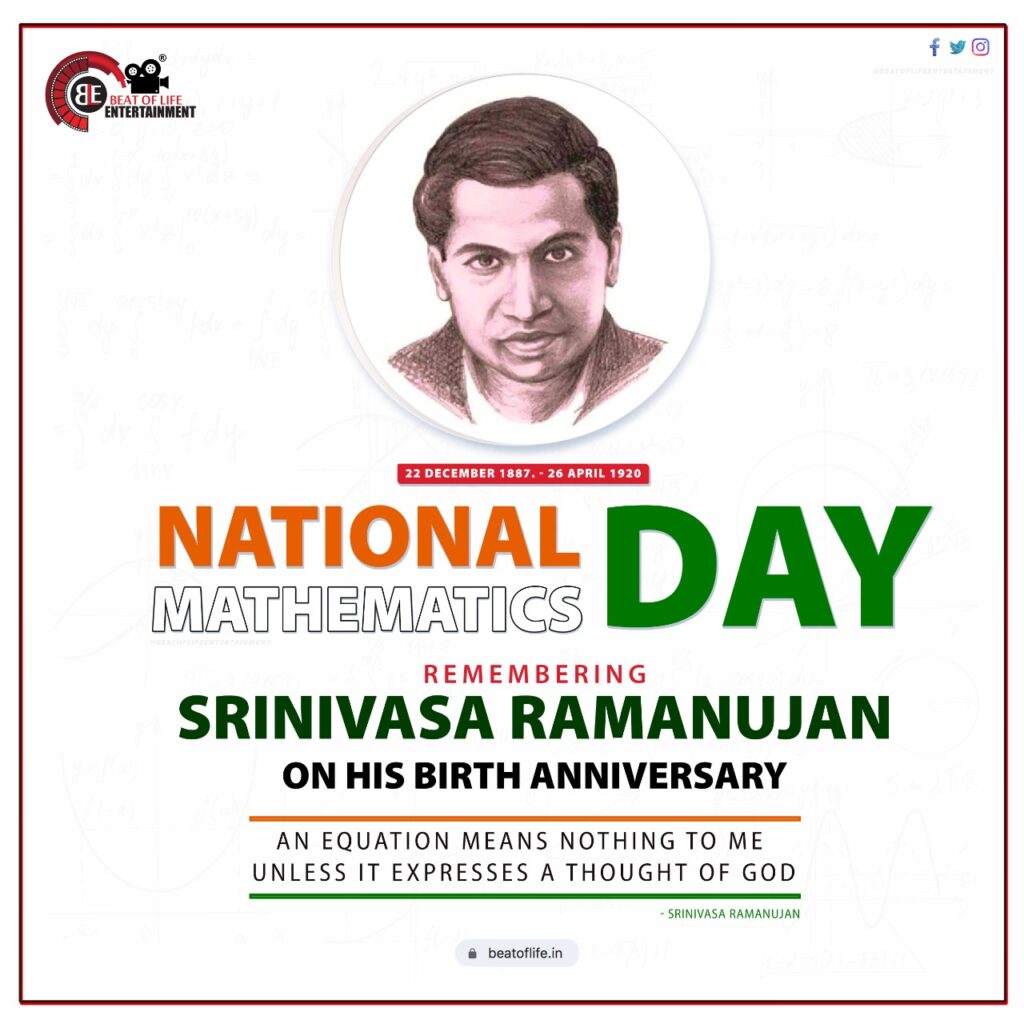 India celebrates National Mathematics Day on December 22 each year. This day is the birth anniversary of the famous mathematician Srinivasa Ramanujan. In 2012, the Prime Minister Manmohan Singh declared this day as the National Mathematical Day to honor the great man.